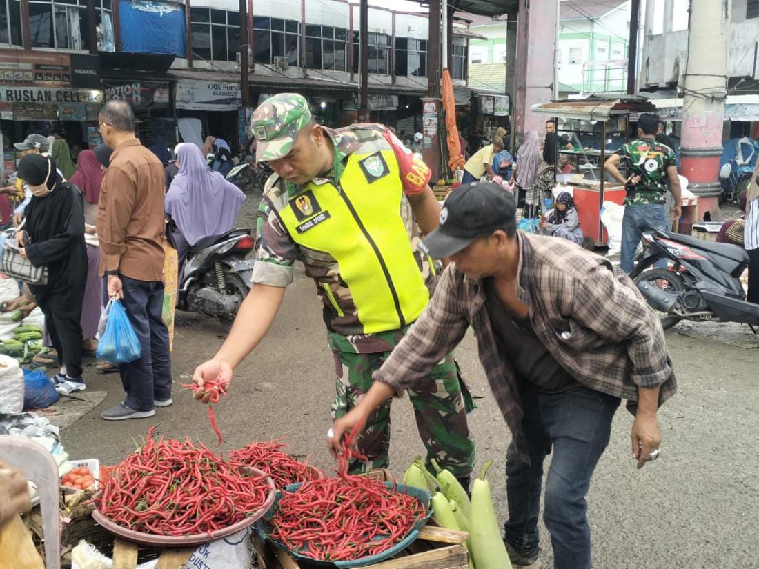 Bandar Baru- Babinsa Koramil 11/Bandar Baru Kodim 0102/Pidie, Sertu Syamsul Efendi, melaksanakan kegiatan pemantauan harga sembako di Pasar Subuh Keude Loungputu, Kecamatan Bandar Baru, Kabupaten Pidie Jaya.