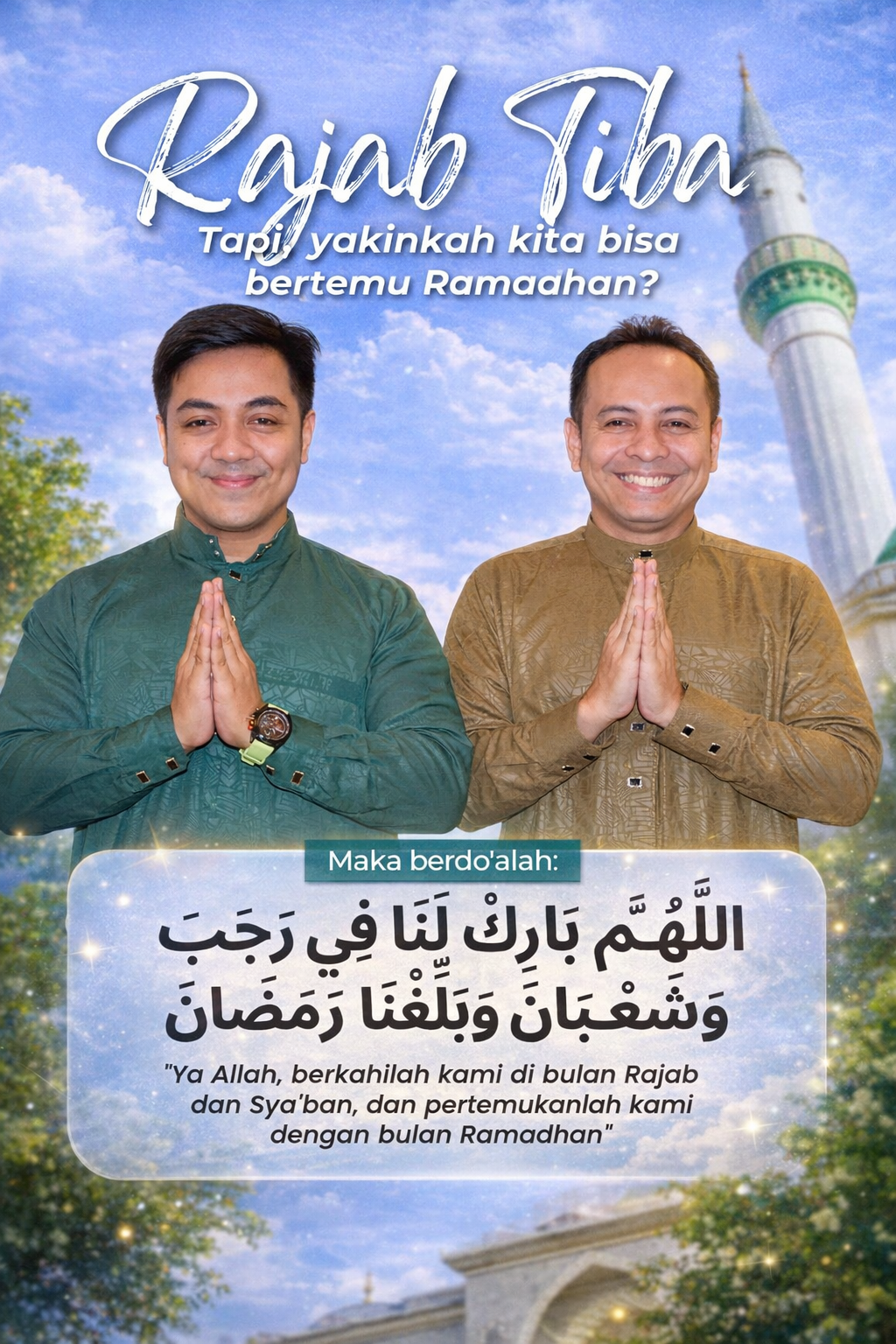 Kita boleh merencanakan banyak hal dalam hidup, tetapi hanya Allah yang menentukan usia dan kesempatan. Karena itu, mari kita panjatkan doa dengan penuh kerendahan hati: Ya Allah, berkahi lah kami di bulan Rajab dan Sya’ban, serta sampaikanlah kami ke bulan Ramadhan,” tuturnya.