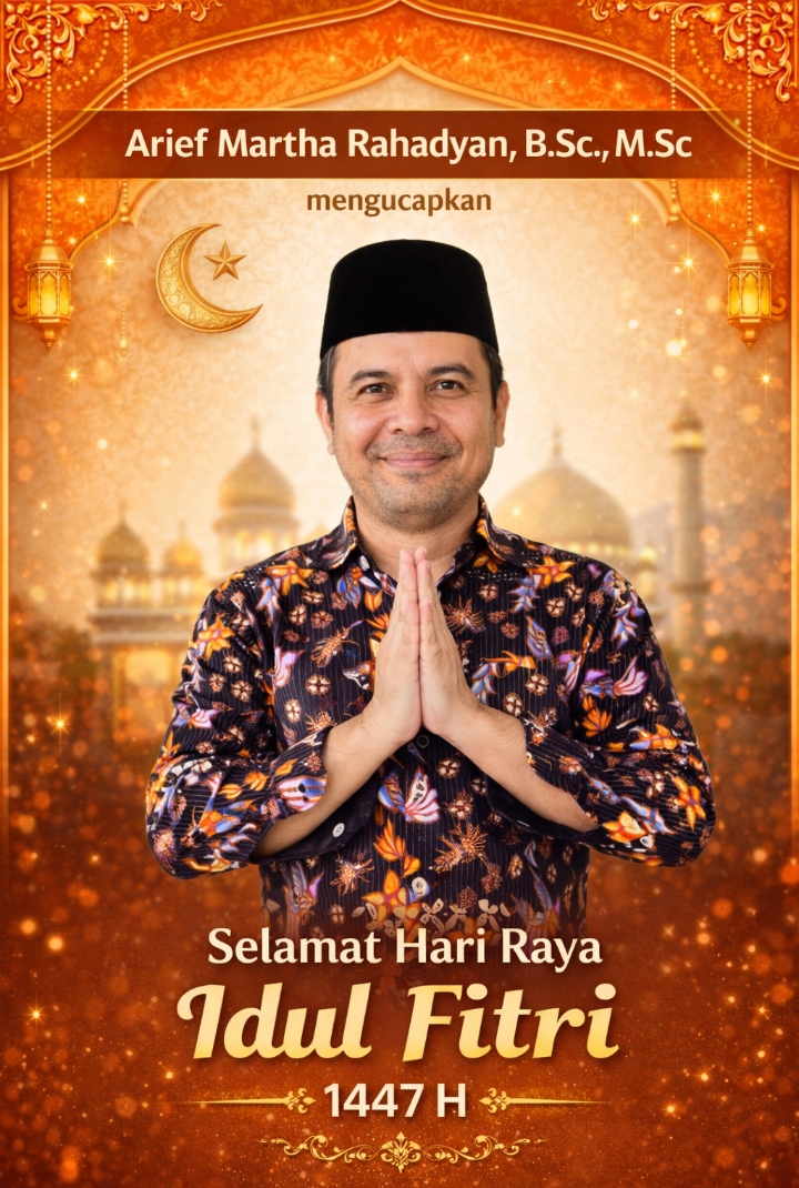 Arief Martha Rahadyan,B.Sc.,M.Sc. Dalam rangka menyambut Hari Raya Idul Fitri 1447 H, menyampaikan ucapan selamat kepada umat muslim di dunia, seraya mengajak untuk menjadikan momentum suci ini sebagai sarana memperkuat silaturahmi dan persatuan.