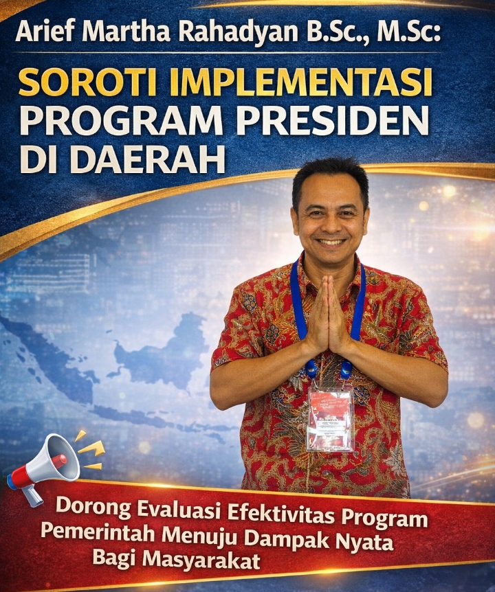 Arief Martha Rahadyan, menyoroti pentingnya penguatan implementasi program-program Presiden di tingkat daerah agar benar-benar memberikan dampak nyata bagi masyarakat.Arief menilai bahwa berbagai program pemerintah secara konsep sudah dirancang dengan baik dan memiliki tujuan strategis. Namun, dalam pelaksanaannya di daerah, masih ditemukan sejumlah kendala yang menghambat efektivitas program tersebut.