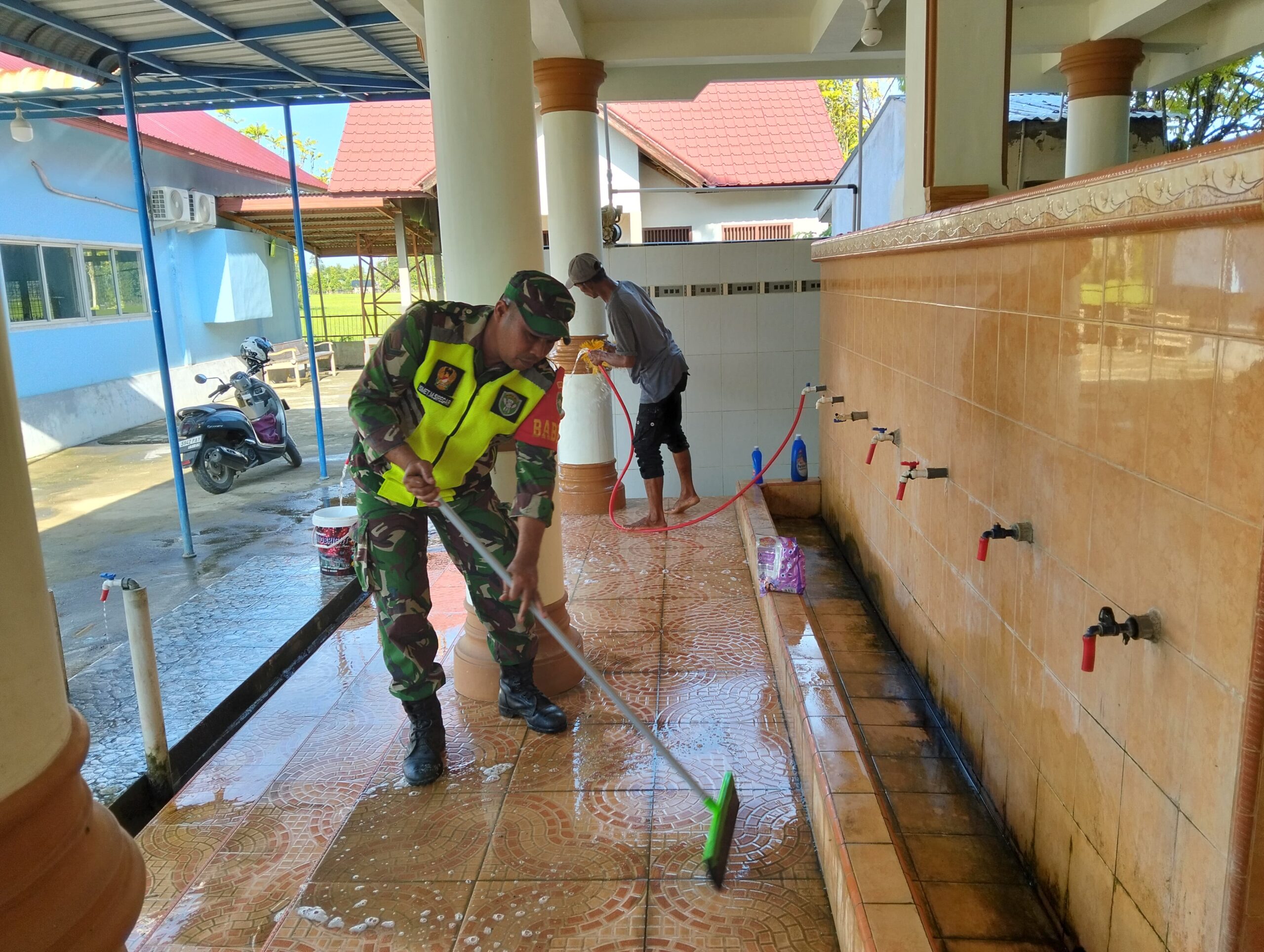 Gotong royong ini tidak hanya bertujuan menjaga kebersihan rumah ibadah, tetapi juga menumbuhkan semangat kebersamaan, kepedulian sosial, dan kemanunggalan TNI dengan rakyat, khususnya dalam momentum bulan suci Ramadhan,” ujar Kapten Mohd. Nursyahri.
