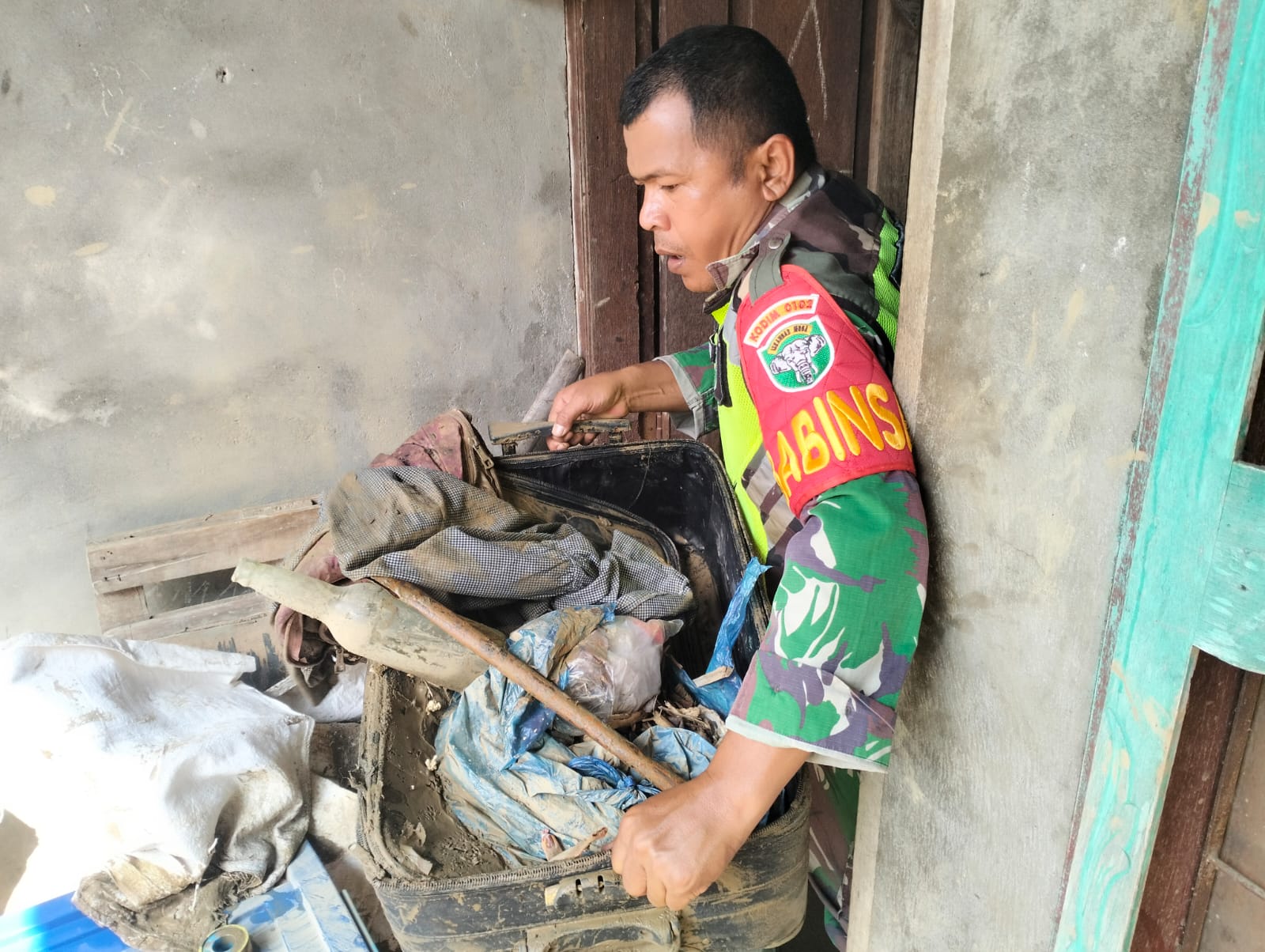 Bandar Baru- Sertu Heri Efendi, Babinsa Koramil 11/Bandar Baru Kodim 0102/Pidie, melaksanakan kegiatan pembersihan rumah warga di Desa Keude Loungputu, Kecamatan Bandar Baru, Kabupaten Pidie Jaya. Kegiatan ini dilakukan sebagai upaya membantu warga membersihkan rumah mereka yang terkena dampak banjir akibat luapan air sungai.Selasa,02/12/25.