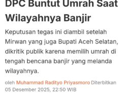 Aceh–infonewsnusantara.com. Keputusan Bupati Aceh Selatan untuk berangkat umrah di tengah bencana banjir yang melanda wilayah tetangga, Kota Subulussalam, menuai kritik keras dari Lumbung Informasi Rakyat (LIRA) Aceh. Kritikan disampaikan langsung oleh Bupati LIRA Aceh, Muhammad Saleh Selian, yang menilai tindakan itu tidak menunjukkan kepekaan seorang pemimpin terhadap kondisi rakyat.