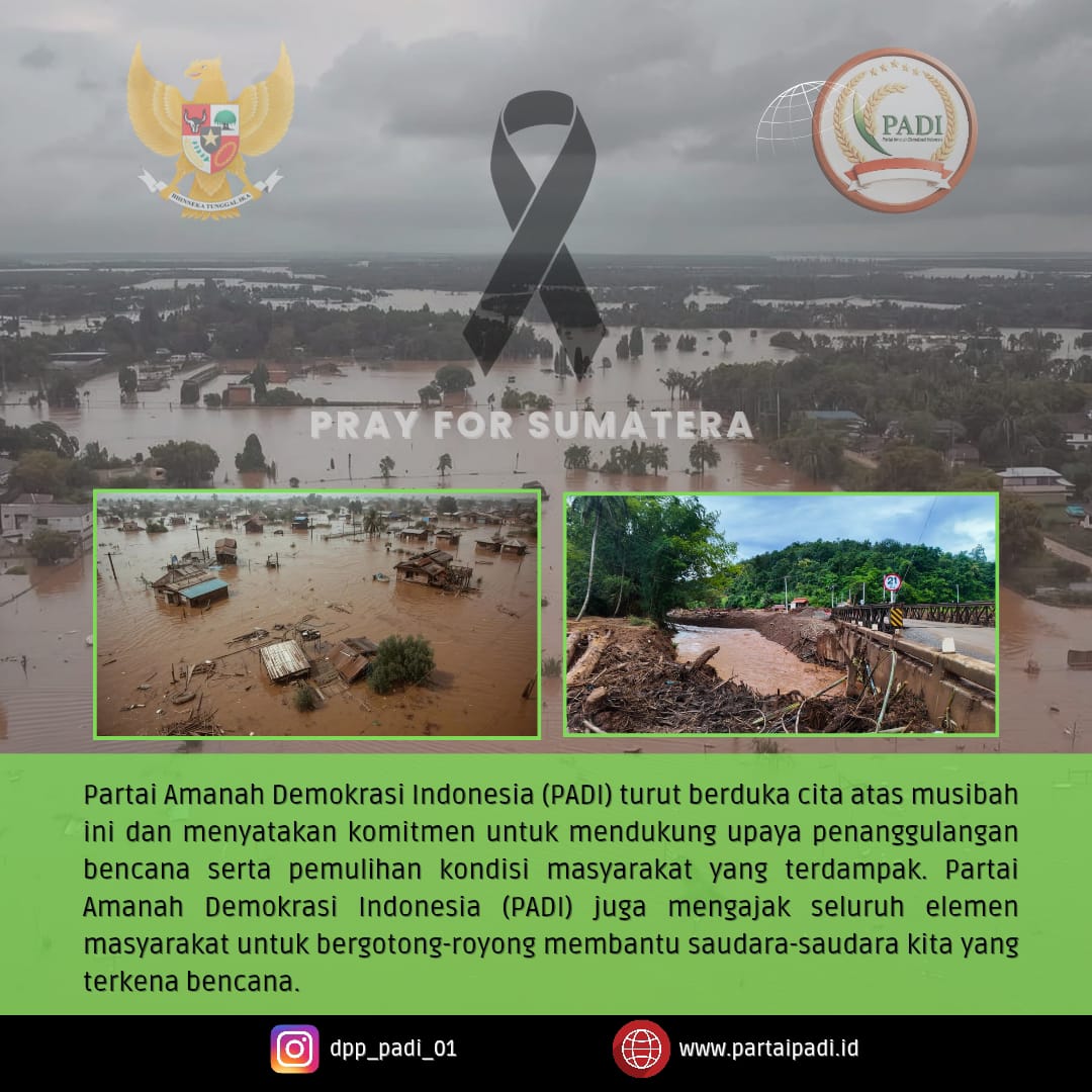 Segenap keluarga besar Partai Amanah Demokrasi Indonesia (PADI) turut berduka cita atas musibah ini dan mengajak seluruh elemen bangsa Indonesia serta masyarakat, mari kita doakan saudara/saudari kita yang terdampak bencana ini agar diberikan kekuatan dan ketabahan.