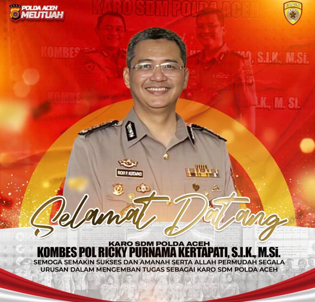 > “Kami mengucapkan selamat datang dan selamat bertugas kepada Kombes Pol Ricky Purnama Kertapati sebagai Karo SDM Polda Aceh. Semoga amanah ini dijalankan dengan penuh tanggung jawab dan membawa kemajuan bagi institusi Polri di Aceh,” ujar Agus Suriadi.