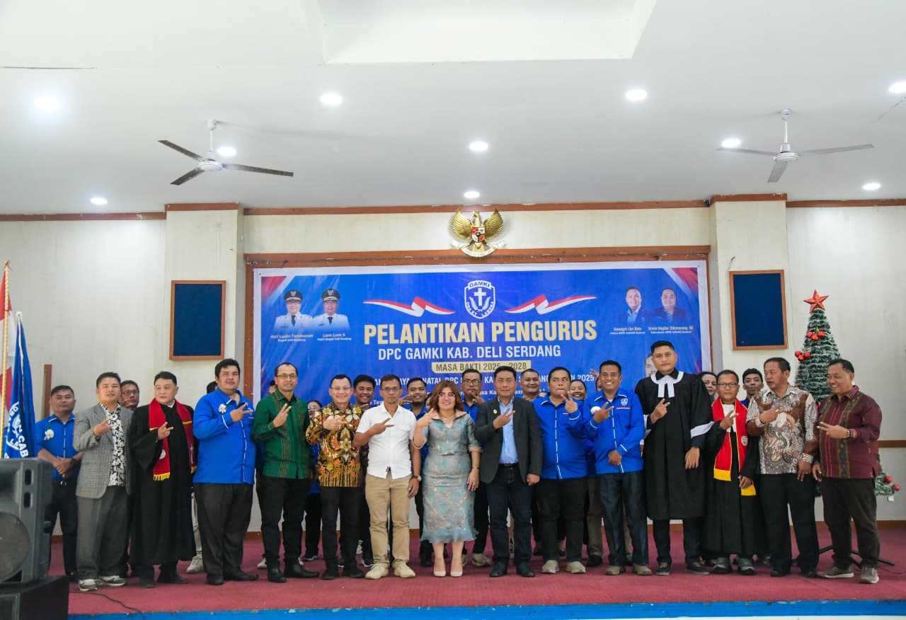 “Gerakan Angkatan Muda Kristen Indonesia (GAMKI) bukan hanya organisasi kepemudaan gerejawi, tetapi juga hadir sebagai kekuatan sosial yang mampu bergerak cepat membantu masyarakat, termasuk saat terjadi bencana banjir disejumlah wilayah Kabupaten Deli Serdang,” ucap Wakil Bupati (Wabup) Deli Serdang, Lom Lom Suwondo, SS di Pelantikan Pengurus Dewan Pimpinan Cabang (DPC) Gerakan Angkatan Muda Kristen Indonesia (GAMKI) Kabupaten Deli Serdang Masa Bakti 2025–2028 di Balairung Pemerintah Kabupaten (Pemkab) Deli Serdang, Sabtu (13/12/2025).