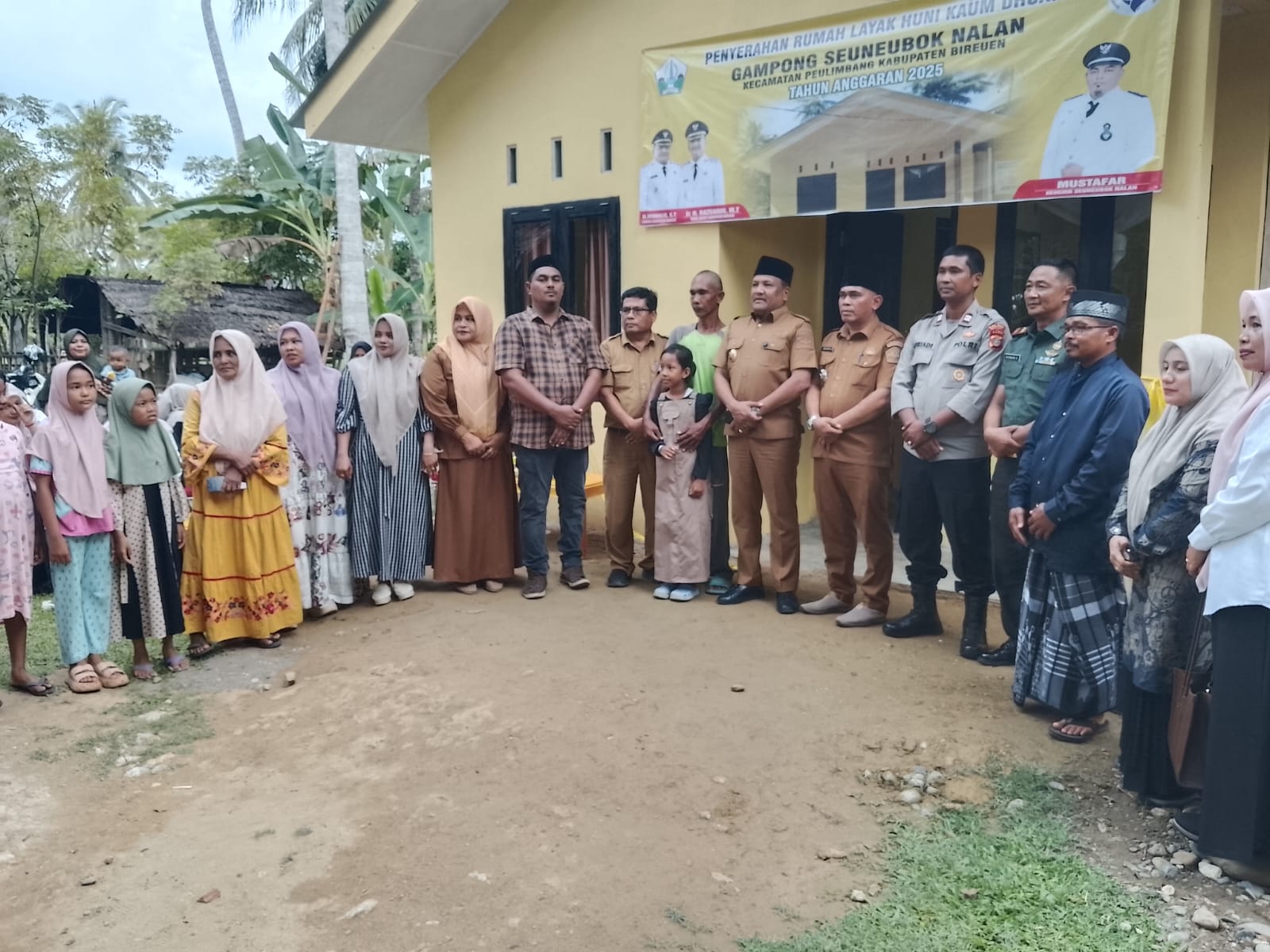 Bupati Bireuen, H. Mukhlis ST menyerahkan satu rumah bantuan kepada Fakruddin Ibrahim, di Dusun Tgk, Di Mane Gampong Seuneubok Nalan, Kecamatan Peulimbang.