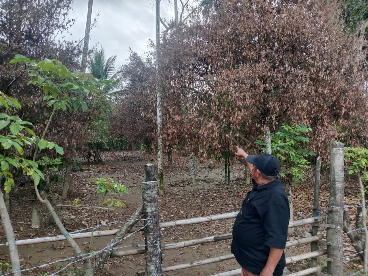 Kondisi tersebut ditinjau langsung oleh Drs. Isa Alima, Pemerhati Sosial dan Kebijakan Publik Aceh, saat berada di Pidie Jaya pada Minggu (11/1). Dalam peninjauan itu, ia melihat hampir seluruh kebun pala dan durian yang berada di perkarangan serta belakang rumah warga tidak lagi menunjukkan tanda kehidupan.