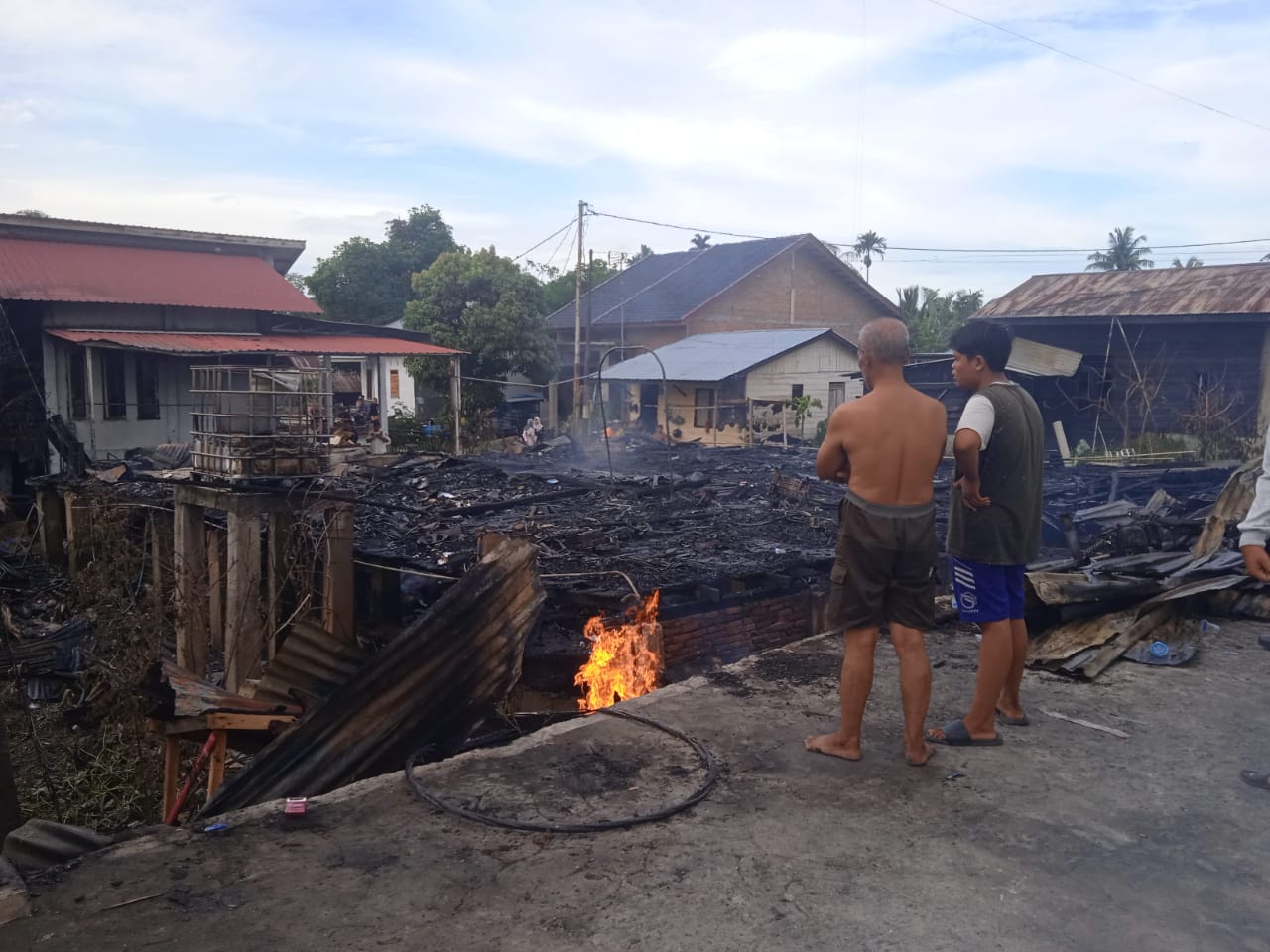 “Api tiba-tiba membesar, semua orang panik. Kami tidak sempat menyelamatkan barang-barang, hanya bisa lari menyelamatkan diri,” ungkap salah seorang warga di lokasi.