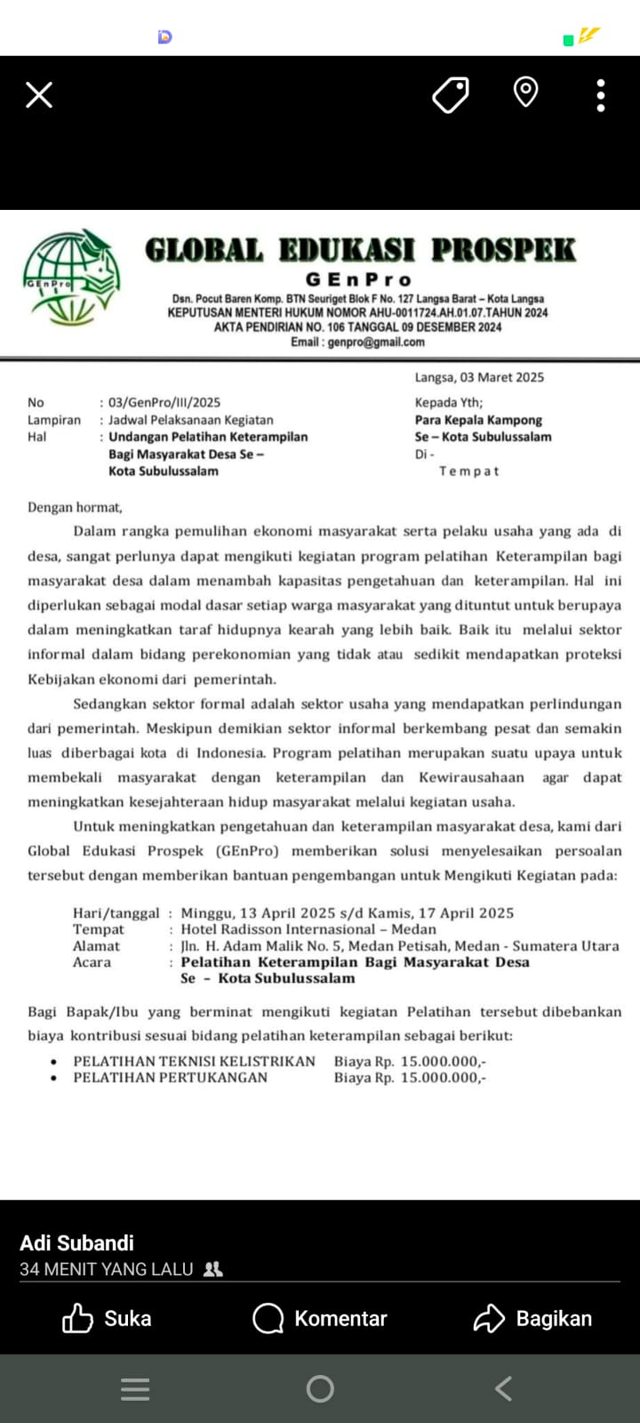1. Memeriksa pelaksana kegiatan: Global Edukasi Prospek.