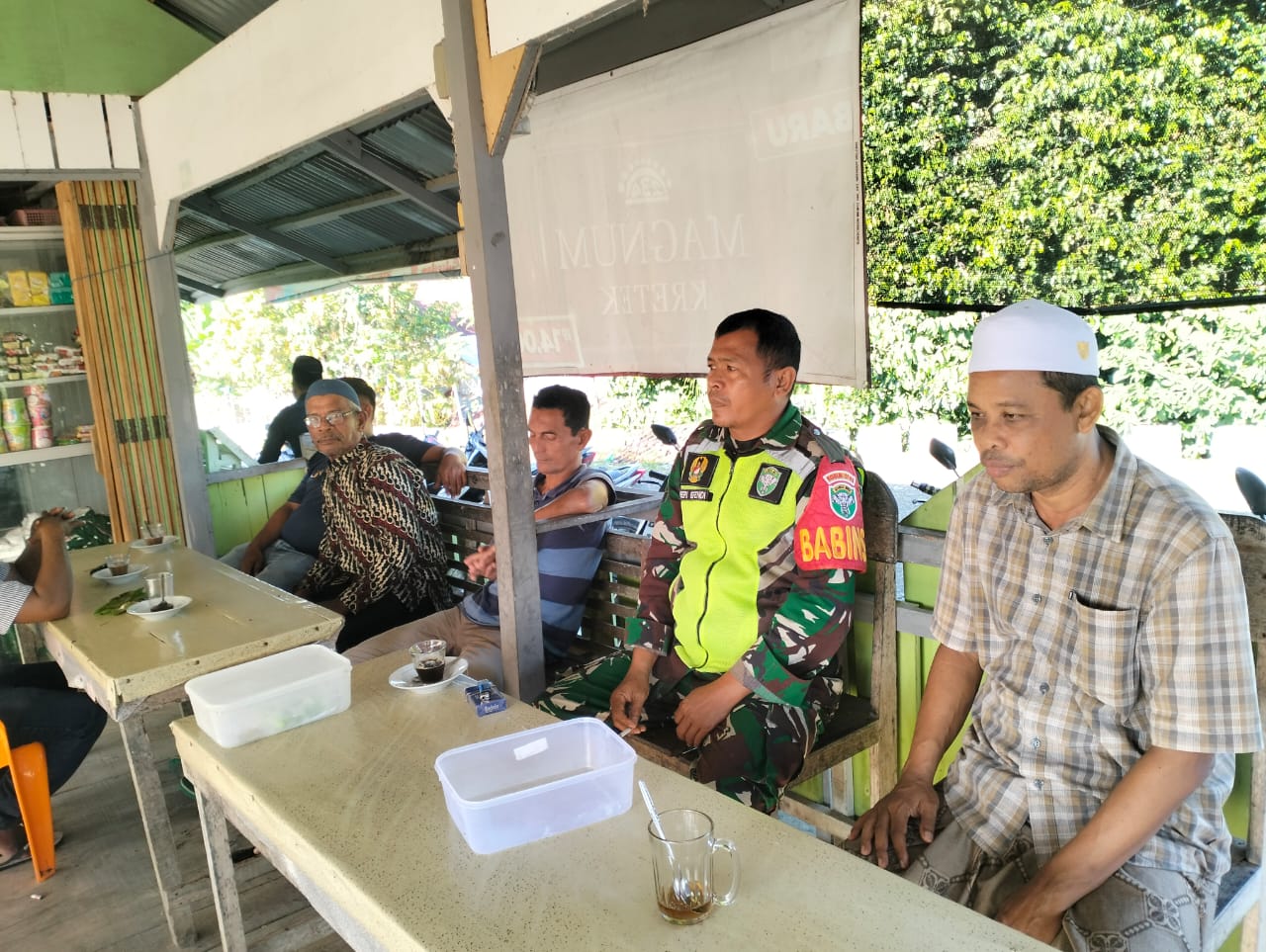 Sertu Heri Efendi, anggota Koramil 11/Bandar Baru Kodim 0102/Pidie, yang berbincang dengan Kepala Desa Araa dan masyarakat setempat. Melalui kegiatan ini, Sertu Heri Efendi dapat memahami aspirasi dan kebutuhan masyarakat, serta memberikan motivasi untuk meningkatkan kualitas hidup.