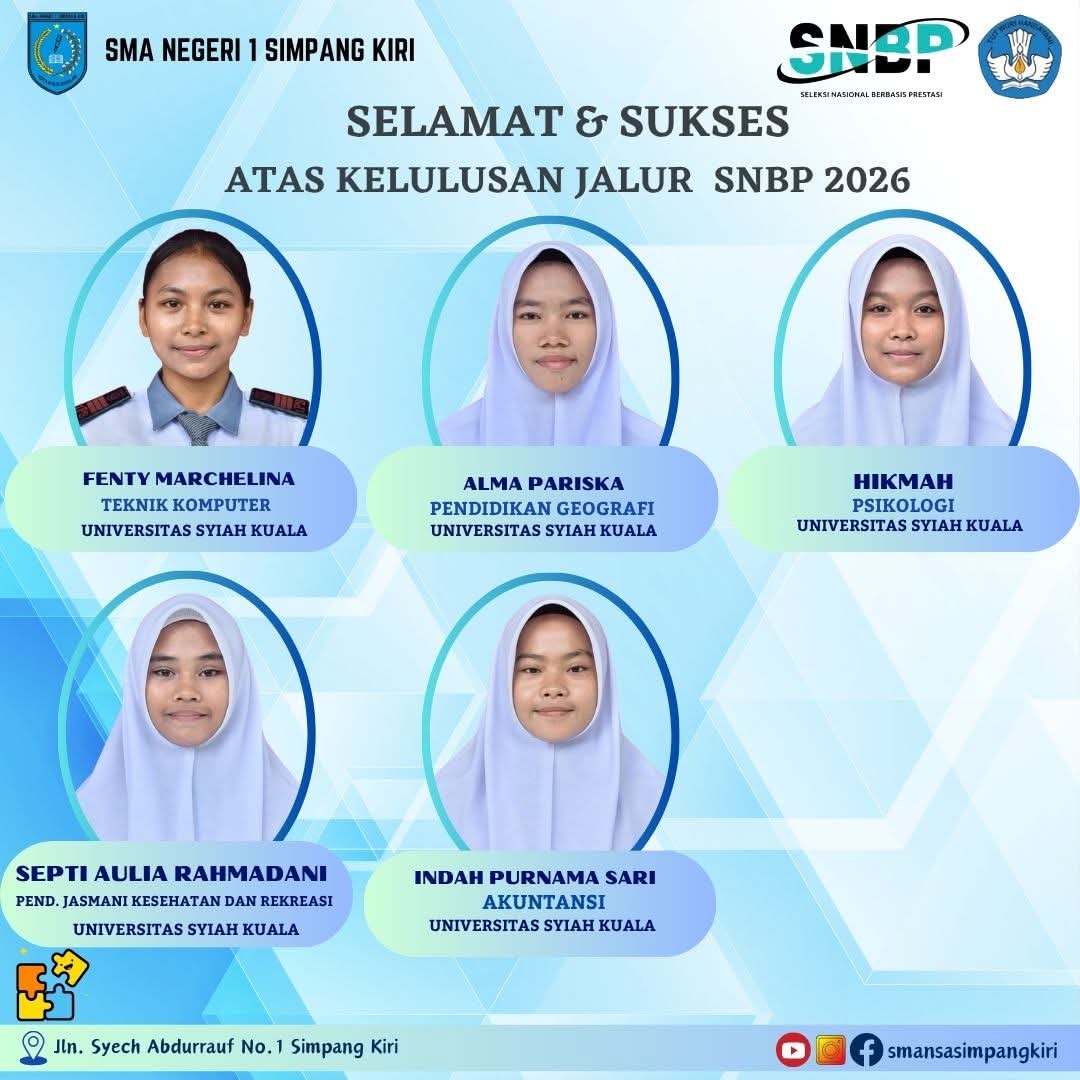 Capaian ini menjadi bukti nyata kualitas pendidikan serta kerja keras seluruh elemen sekolah. Keberhasilan tersebut tidak lepas dari peran aktif siswa, dukungan orang tua, serta dedikasi tenaga pendidik di SMA Negeri 1 Simpang Kiri.