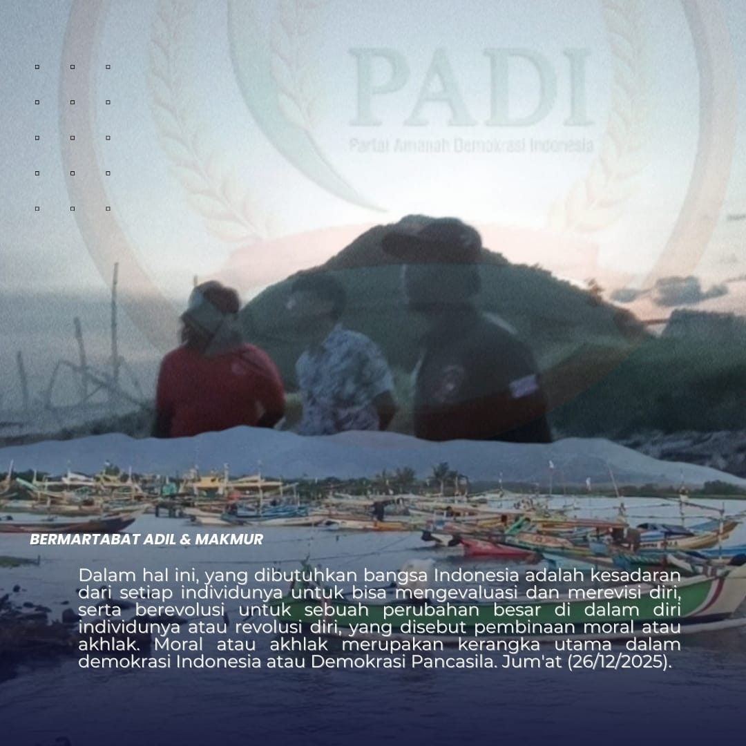 Dalam hal ini, yang dibutuhkan bangsa Indonesia adalah kesadaran dari setiap individunya untuk bisa mengevaluasi dan merevisi diri, serta berevolusi untuk sebuah perubahan besar di dalam diri individunya atau revolusi diri, yang disebut pembinaan moral atau akhlak. Moral atau akhlak merupakan kerangka utama dalam demokrasi Indonesia atau Demokrasi Pancasila. Jum’at (26/12/2025).