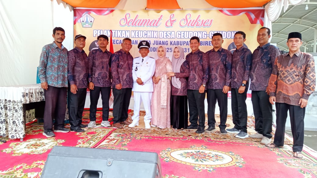 Pelantikan keuchik Gampong Geudong – Geudong kecamatan Kota Juang kabupaten Bireuen periode 2025-2031 di halaman kantor Keuchik, yang di Lantik oleh Bapak camat Kota juang, dan di hadiri oleh Muspika, perangkat Desa, masyarakat dan Tamu undangan lainnya.