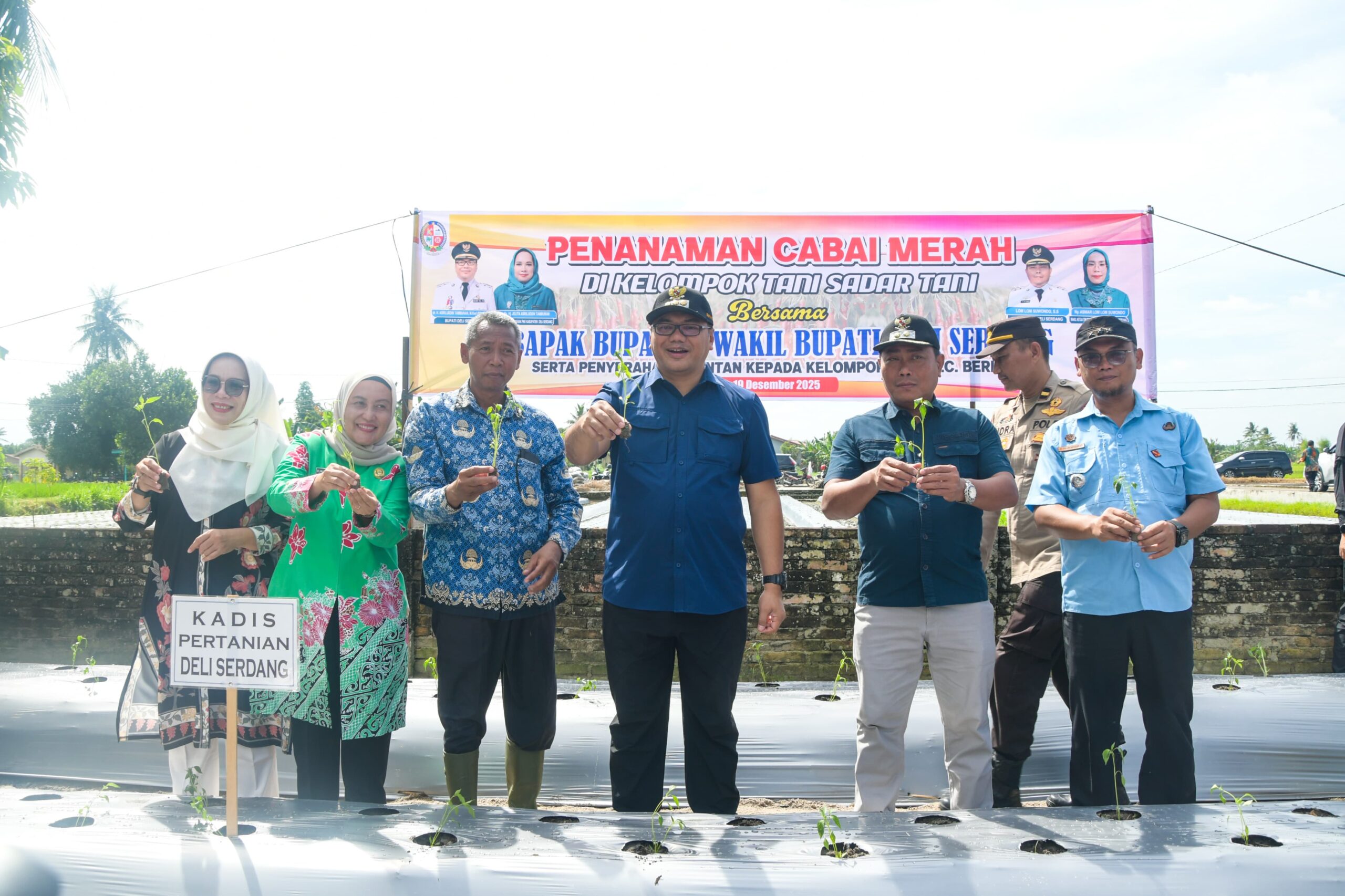 Salah satu langkahnya adalah bekerja sama dengan petani melakukan penanaman cabai merah di lahan seluas 8 hektare milik Kelompok Tani Sadar Tani, Desa Sidodadi Ramunia, Kecamatan Beringin, bersama Wakil Bupati Deli Serdang, Lom Lom Suwondo, SS, Jumat (19/12/2025).