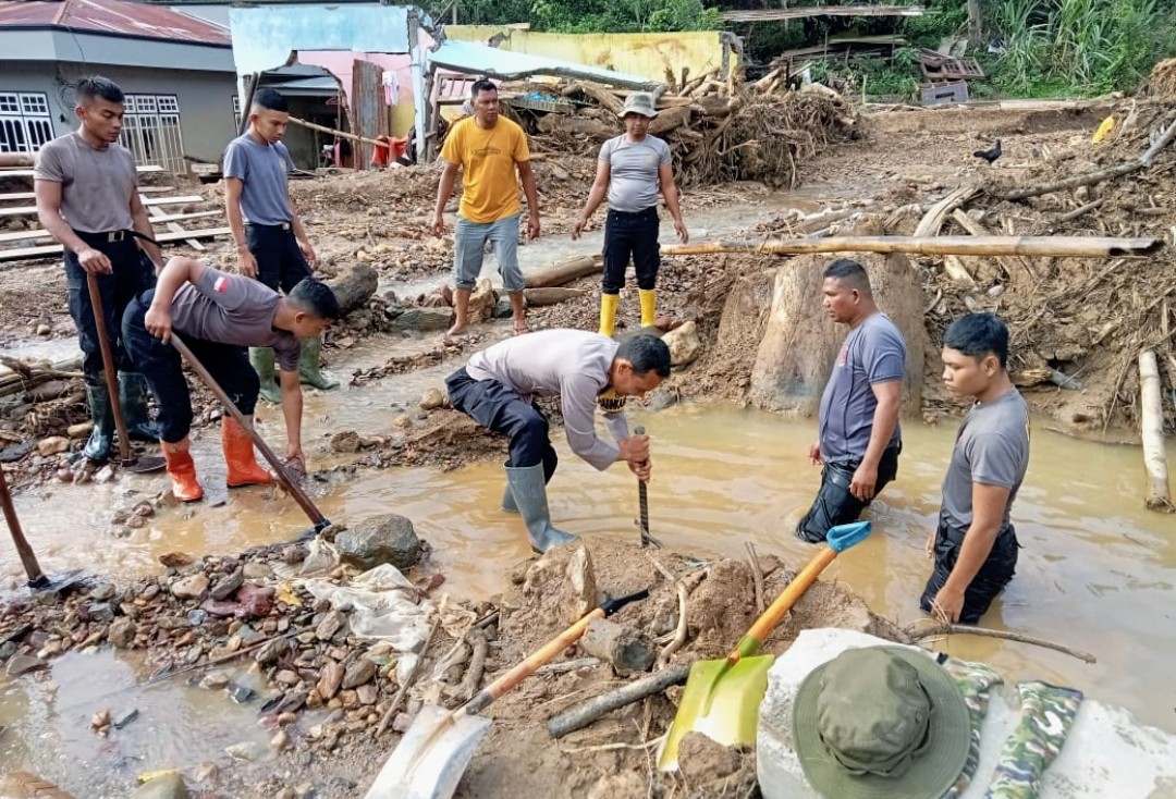 Kepedulian dan kesigapan Polri dalam membantu masyarakat pascabencana kembali ditunjukkan melalui aksi nyata di lapangan. Personel BKO Brimob Polda Aceh bersama personel Polsubsektor Rusip Antara Polsek Silih Nara melaksanakan gotong royong membersihkan drainase dan gorong-gorong yang tersumbat material lumpur dan tanah akibat bencana banjir dan longsor.