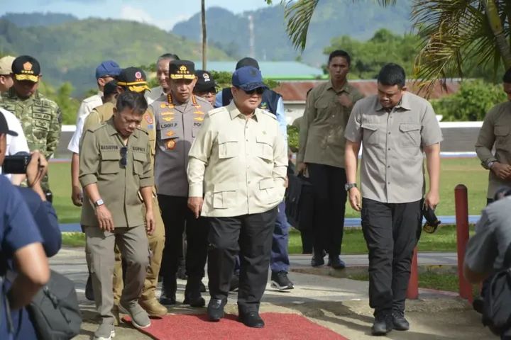 Tapanuli Utara | Presiden RI, Dr. Prabowo Subianto tiba di Bandara Udara Sisingamangaraja XII Silangit, pada Senin (01/12/2025). Kedatangan RI 1 menggunakan Pesawat Kepresidenan RI PK-GRD jenis BBJ dalam rangka peninjauan langsung kondisi dan penanganan bencana alam di Kabupaten Tapanuli Tengah.