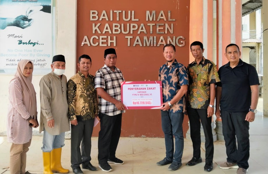 Aceh Tamiang – Perseroan Terbatas Perkebunan Nusantara (PTPN) IV Regional VI menyerahkan zakat karyawan kepada masyarakat yang berhak menerima melalui Baitul Mal Pemerintah Daerah Kabupaten Aceh Tamiang.