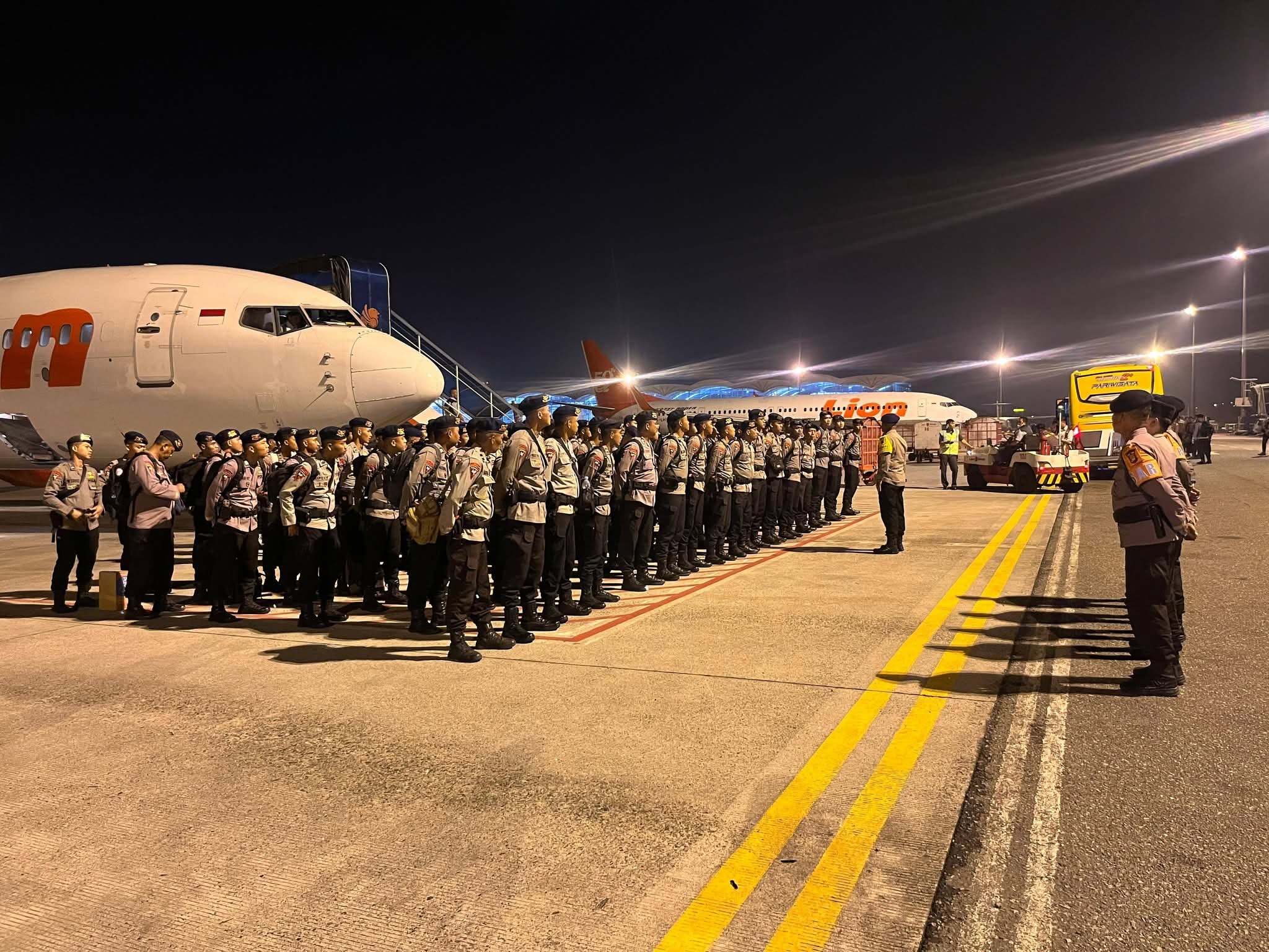 Adapun Pasukan BKO yang tiba di Bandara Internasional Kualanamu, Kabupaten Deli Serdang, terdiri dari Lima Kompi Brimob, masing-masing berjumlah 100 Personel. Kompi 2 Brimob Polda Sulawesi Selatan menjadi pasukan pertama yang mendarat pada pukul 19.40 WIB, disusul Kompi 1 Brimob Polda Kalimantan Timur pada pukul 20.40 WIB. Selanjutnya, Kompi 2 Brimob Polda Banten tiba pada pukul 22.15 WIB, Kompi 1 Brimob Polda DIY pada pukul 23.15 WIB, dan terakhir Kompi 3 Brimob Polda NTB yang mendarat pada pukul 23.50 WIB.