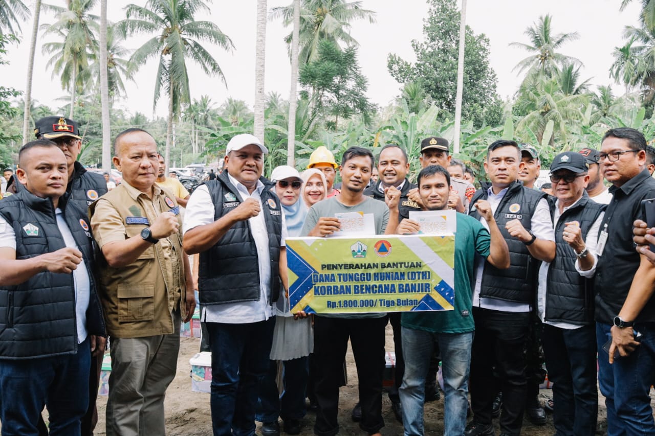 Selain itu, sambil menunggu rumahnya selesai dibangun ada dana dari Pemerintah Pusat menurut Kepala BNPD, bahwa Beliau akan membantu Dana Tunggu Hunian (DTH) kepada Masyarakat sebesar Rp.600.000 Per KK dan hari ini akan diserahkan dana untuk tiga bulan secara simbolis.