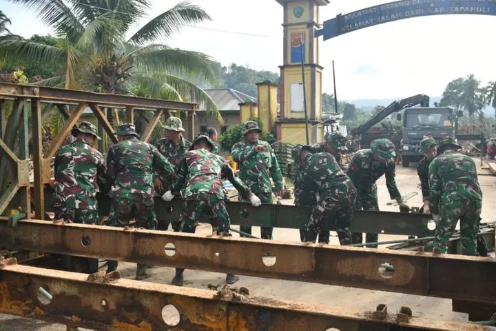 Satgas Gulbencal Yonzipur I/BB memulai pembangunan Jembatan Bailey di Desa Garoga, Kecamatan Batang Toru, yang berada di Perbatasan Kabupaten Tapanuli Selatan (Tapsel) dan Kabupaten Tapanuli Tengah (Tapteng), pada Minggu (07/12/2025). Pembuatan jembatan darurat ini dilakukan untuk memulihkan akses warga masyarakat yang terputus akibat bencana banjir bandang dan tanah longsor beberapa hari lalu. Kegiatan ini dipantau langsung oleh Danrem 023/KS.