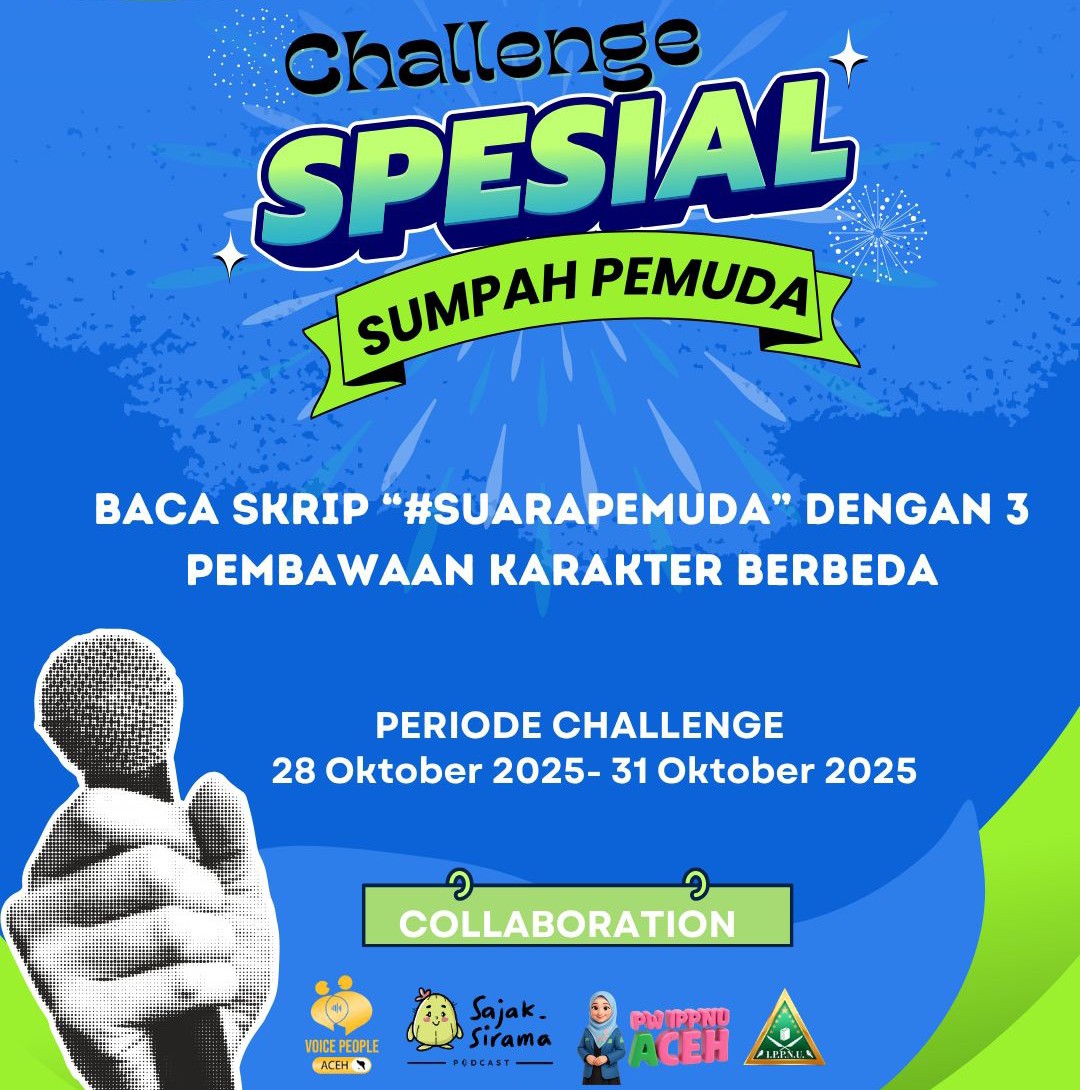 Challenge yang berlangsung dari 28 hingga 31 Oktober 2025 ini terbuka untuk seluruh generasi muda Aceh. Peserta cukup mengikuti akun penyelenggara, menandai tiga teman, dan mengunggah karya dengan tagar #SuaraPemuda serta menandai akun @sajaksirama, @vp.aceh, dan @pwippnuaceh.