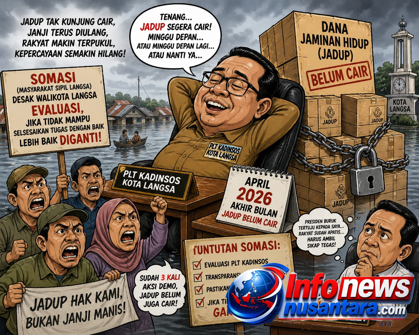 Langsa, Aceh | InfonewsNusantara.com – Solidaritas Masyarakat Sipil Kota Langsa (SOMASI) mempertegas sikapnya terkait polemik penyaluran bantuan jaminan hidup (jadup) bagi korban banjir. Selain mendesak evaluasi, SOMASI juga menyatakan bahwa apabila Pelaksana Tugas (Plt) Kepala Dinas Sosial tidak mampu menyelesaikan tugasnya dengan baik, maka sudah sepatutnya dilakukan pergantian.