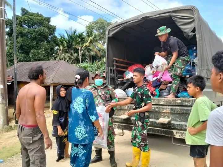 Personel Yon Armed 2/KS mendistribusikan bantuan sembako secara langsung kepada warga masyarakat dipermukiman dan tenda pengungsian. Metode door to door tersebut memastikan seluruh bantuan tiba tepat sasaran, terutama bagi warga masyarakat yang kesulitan menjangkau titik distribusi akibat kondisi lingkungan yang masih dipenuhi lumpur dan sisa material banjir bandang dan longsor.