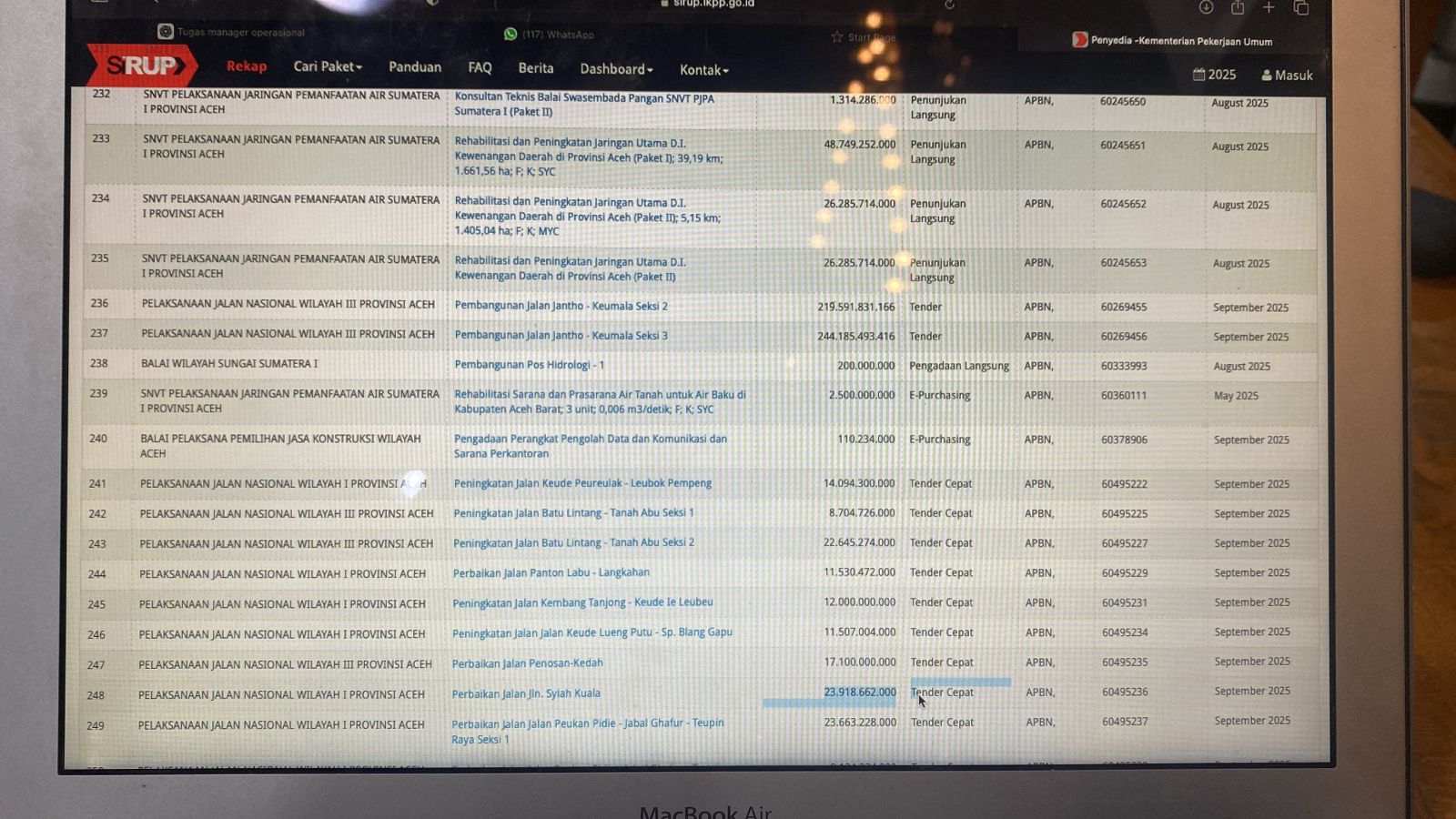8. Perbaikan jalan Syiah Kuala Rp.23.918.662.000