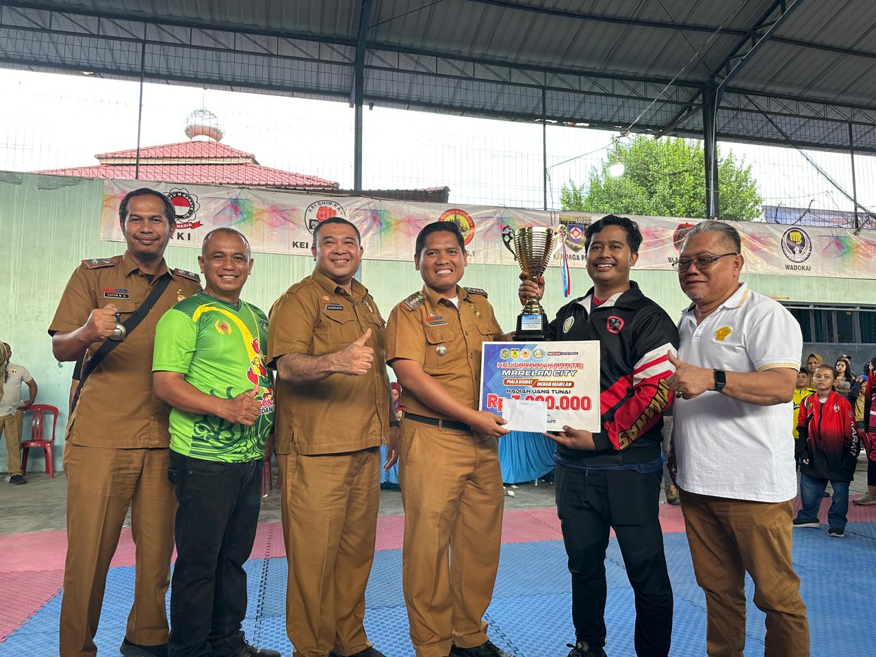 Camat Medan Marelan, Zulkifli S. Pulungan, S.STP., MAP., didampingi Ketua Komite Olahraga Nasional Indonesia (KONI) Kecamatan Medan Marelan, Syafrizal Keliat menyerahkan langsung hadiah dan piala Kejuaraan Karate Marelan City kepada para pemenang diajang Turnamen Karate tersebut. Sebagaimana diketahui sebelumnya, Turnamen Karate Marelan City memperebutkan Piala Camat Medan Marelan digelar selama 2 hari oleh Komite Olahraga Nasional Indonesia (KONI) Kecamatan Medan Marelan, pada Minggu siang (21/12/2025).