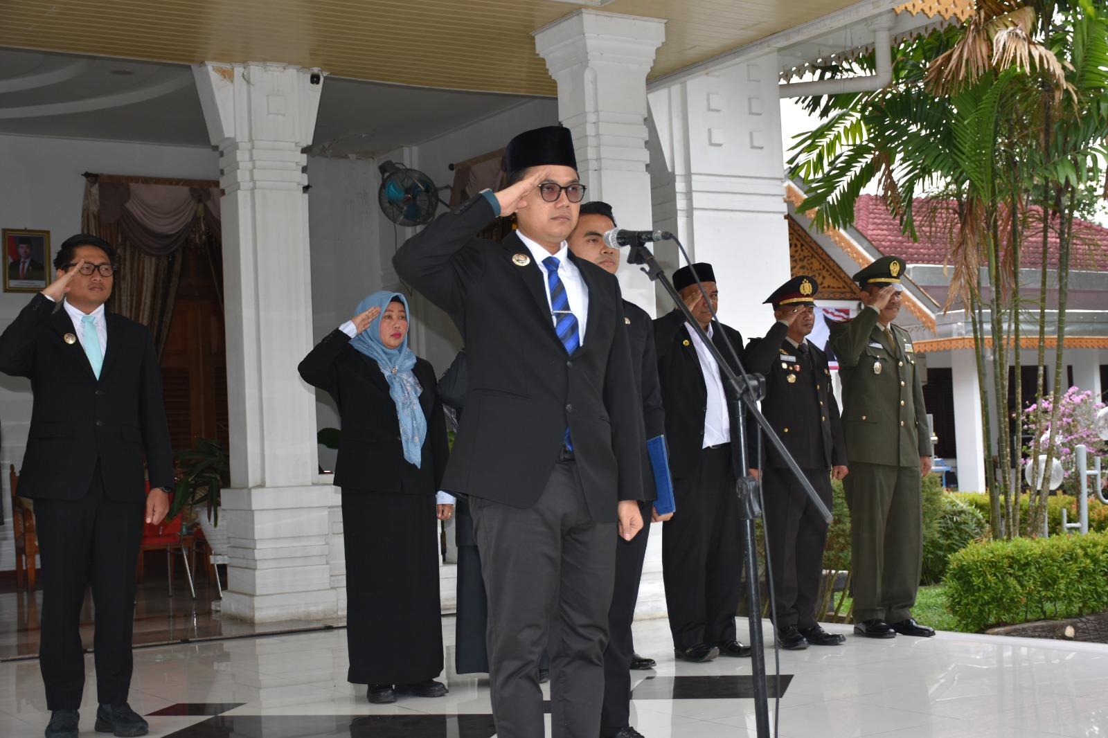 Bertindak sebagai Inspektur Upacara Walikota Langsa Jeffry Sentana S Putra, SE, dan Komandan Upacara Pasiter Kodim 0104/Aceh Timur Lettu Kavaleri Muhammad Irwan, di Halaman Pendopo Walikota Langsa, Rabu 1 Oktober 2025.