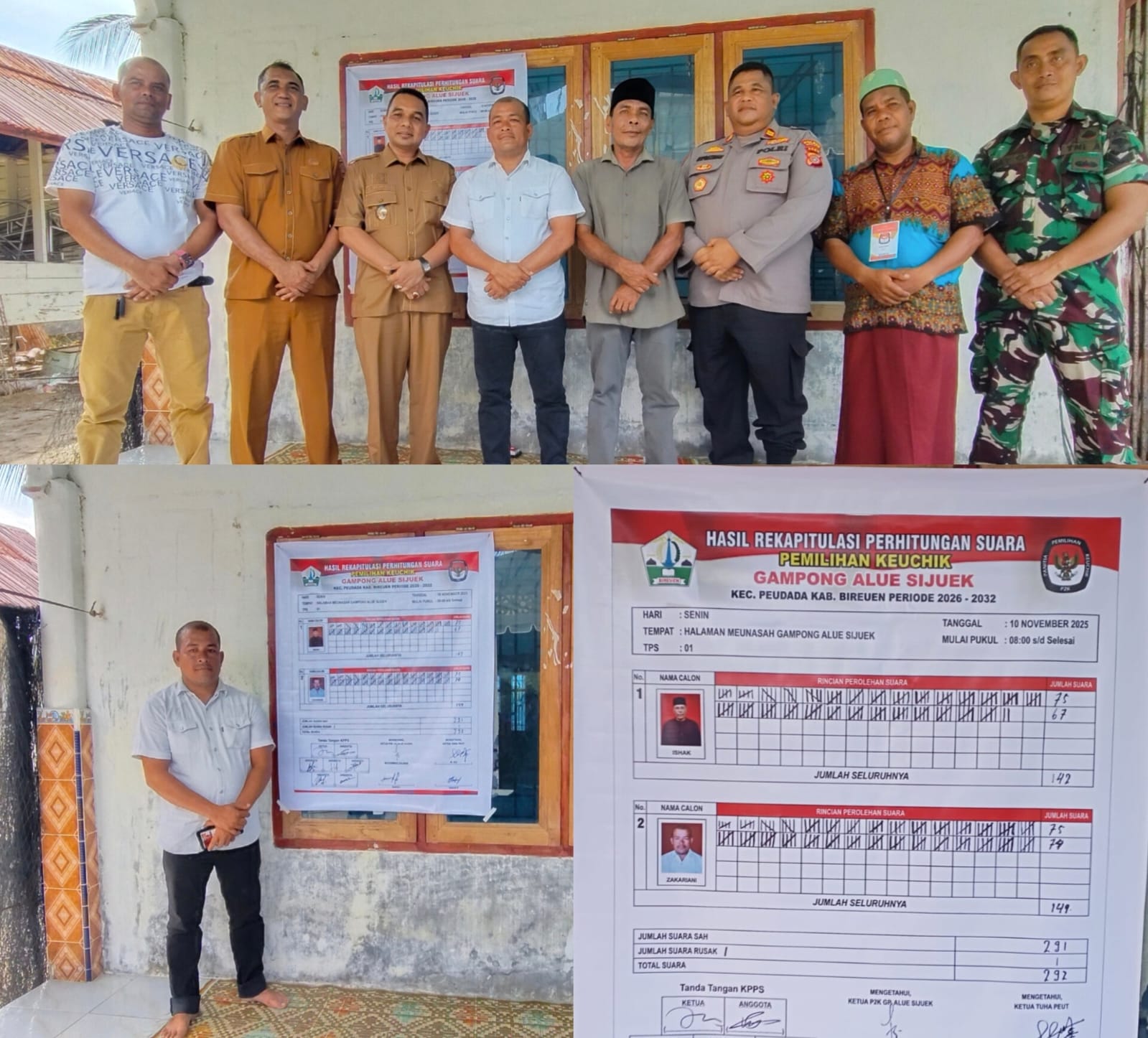 kabupaten Bireuen Periode 2025/2031 di Halaman Menasah Setempat berjalan lancar dan tertib, Senin 10 November 2025